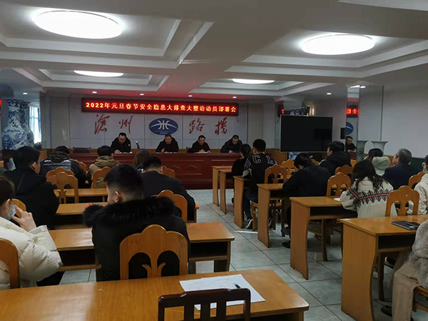 2021年12月30日下午14:30,路橋公司安委會組織召開2022年元旦春節(jié)安全隱患大排查大整治動員部署會,會上曹艷明總經(jīng)理傳達了集團下發(fā)的關(guān)于疫情防控、安全風險隱患大排查大整治等文件精神,部署了《滄州路橋工程公司安委會2022年元旦春節(jié)期間安全生產(chǎn)風險隱患大排查大整治行動方案》,要求各部門、子(分)公司積極落實相關(guān)責任,嚴格按行動方案中實施步驟完成各階段任務(wù)目標,杜絕各類生產(chǎn)安全事故發(fā)生。同時,還應(yīng)提高政治站位,進一步做好雙節(jié)期間疫情防控工作,規(guī)范來訪人員掃碼登記、嚴格執(zhí)行“領(lǐng)導(dǎo)帶班、雙人雙崗”值班制度,確保2022年元旦、春節(jié)、省市“兩會”、冬奧會、冬殘奧會和全國“兩會”期間公司安全生產(chǎn)形勢穩(wěn)定。