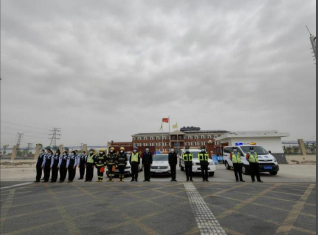演練內(nèi)容為一輛運輸危險品貨車發(fā)生事故,車輛疑似起火冒煙。分為五個環(huán)節(jié):