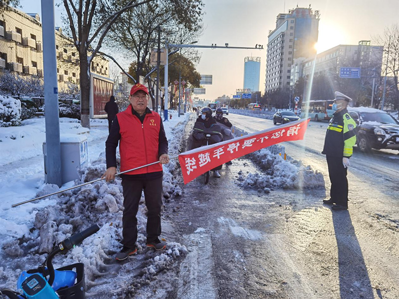 志愿者們按時(shí)到崗,在路口的不同位置,與交警同志一起頂著嚴(yán)寒,引導(dǎo)市民遵守交通規(guī)則,并向他們宣傳安全法規(guī)等知識(shí),勸導(dǎo)糾正不文明交通行為。對(duì)亂闖紅燈、橫穿馬路、越線等候、逆向行駛、不佩戴頭盔通行的非機(jī)動(dòng)車、行人進(jìn)行勸導(dǎo),避免了交通事故的發(fā)生,為寒冷的冬日平添了一抹亮色。
