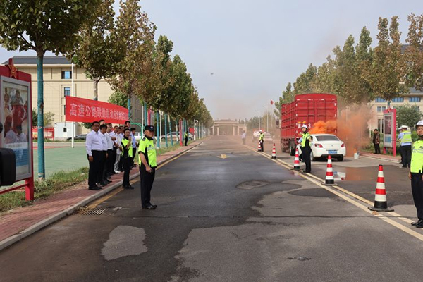 在這秋高氣爽,碩果飄香的季節(jié)里,道路管理分公司為期一周的封閉式軍事集訓(xùn)在今日迎來匯報(bào)表演時(shí)刻,滄州交發(fā)集團(tuán)黨委副書記、總經(jīng)理?xiàng)钫钔緮y集團(tuán)綜合部、黨委辦、安全管理部、運(yùn)營部、審計(jì)法務(wù)部相關(guān)負(fù)責(zé)人蒞臨觀摩。交通運(yùn)輸執(zhí)法支隊(duì)、交通運(yùn)輸執(zhí)法一大隊(duì)、高速交警青縣大隊(duì)、青縣消防、120急救和歐亞杰救援公司參加了此次軍訓(xùn)匯演活動(dòng)。