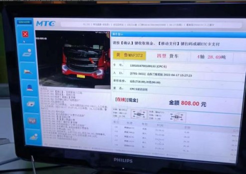 經(jīng)刷卡顯示該車入口信息為山東蘭陵北站,應(yīng)繳費808元。當(dāng)班收費員提示司機繳費后,司機以運輸鮮活農(nóng)產(chǎn)品為由要求免費通行。