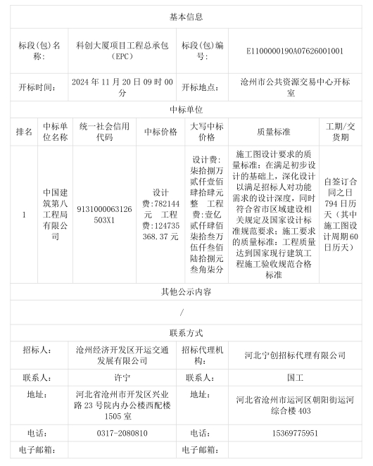 科創(chuàng)大廈項目工程總承包(EPC)中標結果公示