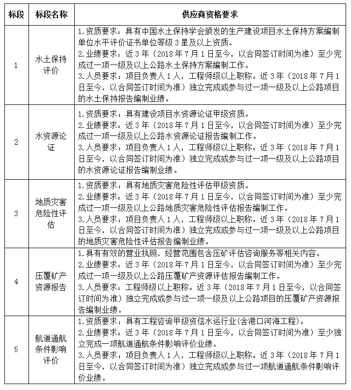 (三)標段劃分:5個標段,1標段水土保持評價、2標段水資源論證、3標段地質(zhì)災害危險性評估、4標段壓覆礦產(chǎn)資源、5標段航道通航條件影響評價。