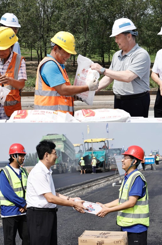 慰問組先后到榮烏高速改擴建一分部和曲港八標段施工現(xiàn)場,詳細了解工程進度和勞動競賽開展情況,看望慰問一線干部職工,并送來礦泉水、方便面、火腿腸、大米、面粉、食用油等慰問品,給基層一線干部職工帶來了河北省交通運輸工會的關心和關愛。慰問組對滄州交發(fā)集團一線職工認真履職盡責,勇于擔當作為給予充分肯定,對項目工程進度給予高度認可,并叮囑在作業(yè)場所要按規(guī)定配備職業(yè)防護設施,在做好職工安全防護的同時做好后勤保障,落實好防暑降溫、飲食衛(wèi)生、安全生產(chǎn)等工作,鼓勵職工繼續(xù)發(fā)揚勞模精神、勞動精神、工匠精神,積極投身項目建設。